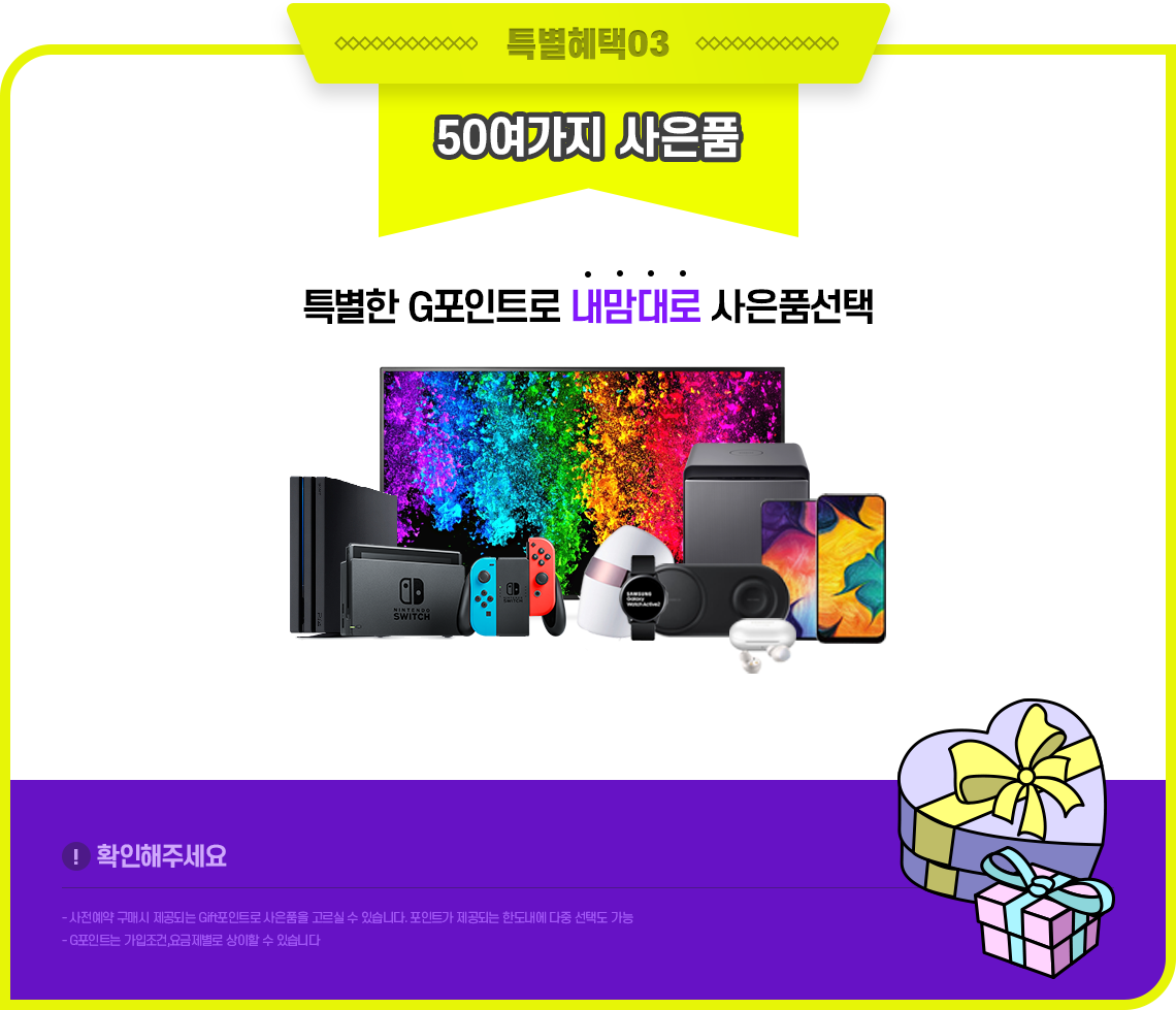 ▶ 50여개 사은품을 내맘대로 선택이 가능한 G포인트 증정